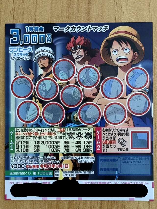 今回チャレンジするスクラッチは「ワンピーススクラッチ ルフィ&ロー&キッド2」